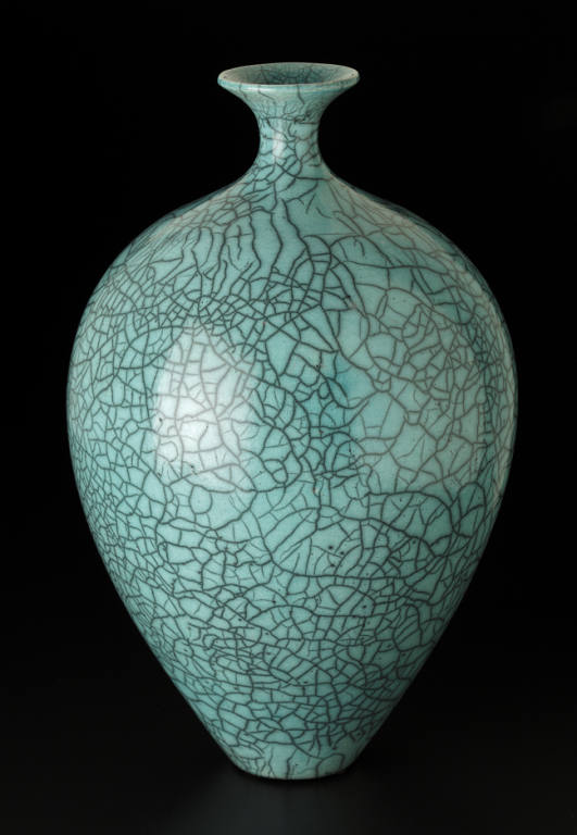 Raku is a sixteenth century Japanese pottery firing process which is closely associated with Zen Buddhism and the Tea Ceremony. “Raku for me is a way of staying connected with my work during the firing process.” Bob’s raku is fired in a small gas kiln to about 1900 degrees Fahrenheit. Once the proper temperature is reached the kiln is opened and the glowing glazed pots are carefully pulled from the kiln using metal tongs. The hot pots are placed in a nest of hard wood chips; upon contact the heat of the pot ignites the wood and the pots begin to cool in the smoky fire. The pots eventually are completely covered with wood chips and the mounds of wood covered pots smolder. Occasionally the mounds are uncovered exposing the still very hot pot to the cool air and then they are recovered with dry wood chips; by doing this a crackle pattern forms in the glaze surface, this pattern becomes very back from the carbon of the burning wood. The crackle pattern is only on the glaze surface and does not damage the pot. Bob also fires raku with matte glazes. The matte fired raku is fired to the same temperature and also cools in hard wood chips. “I’ve learned through trial and error that by dampening the wood chips I can influence the color of the glazes. I dampen the wood with a specific amount of water per five gallon bucket of wood chips.” The matte glazed pots are removed from the kiln in a similar manner as previously described, but rather than exposing the hot pots to the cool air these pots are cooled in the dampened wood for about a half an hour. Upon uncovering they are sprayed with water which quickly cools the pots and freezes the color of the matte glazes. These matte pieces are often fired multiple times in this manner.” I believe that in multiple firings of matte glazes richer colors are obtained.” “My raku firings are done outside during the heat of the summer as well as cold of the winter it all makes me feel alive and involved with my pots.” |